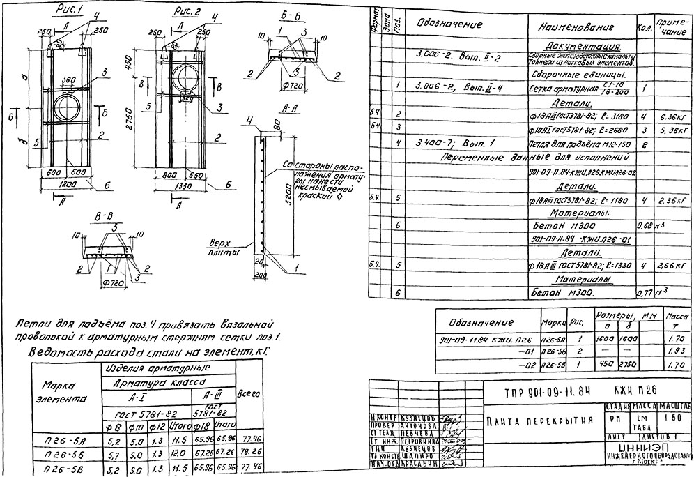 Плита перекрытия ПТ 300.120.12-1,5 (2,99х1,18х0,12), серия 3.006.1-8-П...